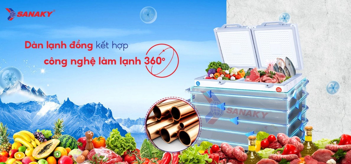 Tủ Đông Sanaky 360 Lít VH-3699W2KD có dung tích 360 Lít và thiết kế 2 ngăn đông – mát cùng 2 cánh mở trang bị kính cường lực mạnh mẽ. Tủ sở hữu công nghệ làm lạnh số 1 Việt Nam giúp đáp ứng mọi nhu cầu bảo quản thực phẩm của bạn, thích hợp sử dụng cho các cửa hàng bách hóa, nhà hàng, hộ gia đình từ 3-4 người,….Tủ được tráng 1 lớp mặt kính cường lực bền chắc giúp giảm khả năng va đập hay bị trầy xước, hoen rỉ theo năm tháng do người sử dụng hay có thói quen để vật dụng lên mặt tủ để tiết kiệm diện tích. Lớp kính cường lực trên mặt tủ hoàn toàn có thể mang lại cho bạn sự đảm bảo chắc chắn như một bức tường hoàn hảo, khi vỡ sẽ tạo thành những hạt vụn như hạt ngô không sắc cạnh, không gây sát thương cho người xung quanh.