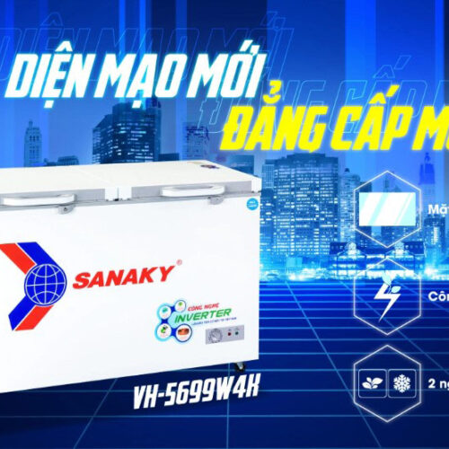 Tủ đông Sanaky 365 Lít VH-5699W4K Inverter thuộc dòng tủ 1 ngăn đông và 1 ngăn mát với 2 nắp dỡ riêng biệt đem đến sự tiện lợi trong việc bảo quản và tìm kiếm thực phẩm. Sản phẩm mang màu sắc trung tính, phù hợp với mọi không gian bếp, quán ăn hay nhà hàng. Ngoài ra thiết kế thêm 4 cánh xe chịu lực giúp việc di chuyển trở nên dễ dàng hơn, không tốn nhiều công sức. Cánh tủ làm bằng kính cường lực giúp tô điểm cho không gian bếp, có khả năng chịu lực và nhiệt tốt. Đồng thời kính cường lực có bề mặt nhẵn bóng có thể dễ dàng lau chùi vệ sinh mà không mất nhiều thời gian.