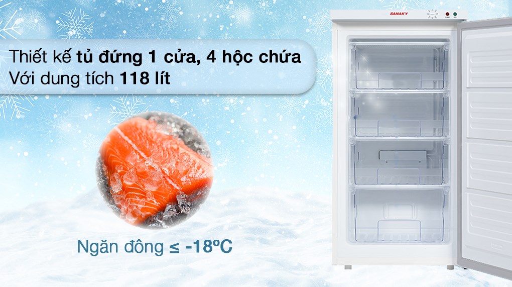 Tủ đông Sanaky Inverter 118 Lít VH160VD3 sở hữu thiết kế nhỏ gọn cùng gam màu đen cá tính, kiểu dáng mở 1 cánh tiện lợi giúp tiết kiệm không gian đặt để nhưng vẫn đảm bảo lưu trữ được lượng lớn thực phẩm nhờ vào dung tích 119 lít. Thân tủ được làm bằng thép sơn tĩnh điện cao cấp, cửa tủ cấu tạo từ hợp kim nhôm phủ lớp sơn tĩnh điện đem lại độ bền đẹp, hạn chế oxi hóa và dễ dàng lau chùi.