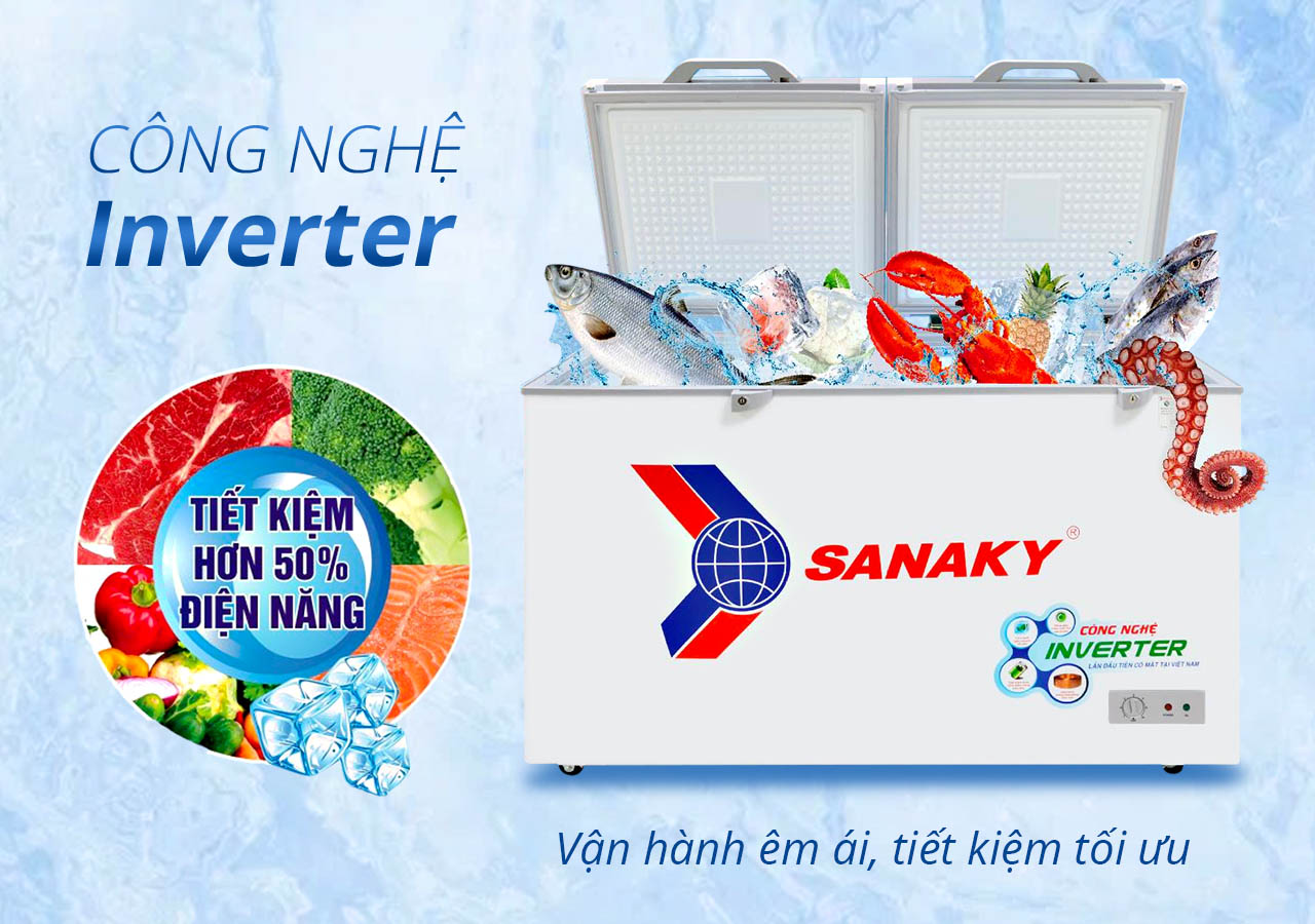 Tủ Đông Sanaky VH-2899A3 sở hữu công nghệ Smart Inverter giúp thực phẩm trong tủ được bảo quản tươi ngon và kéo dài thời gian sử dụng hơn nhờ cơ chế làm lạnh nhanh và duy trì độ ẩm tốt.