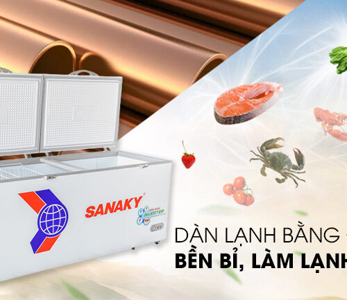 – Tủ đông Sanaky này được trang bị dàn lạnh bằng đồng nguyên chất với khả năng dẫn nhiệt nhanh, thời gian làm lạnh được đẩy nhanh hơn, giữ lại khi ngắt điện sẽ lâu hơn tủ lạnh có công nghệ làm lạnh thông thường. Nhờ đó thức ăn sẽ giữ được nguyên chất dinh dưỡng và tươi ngon lâu hơn.
