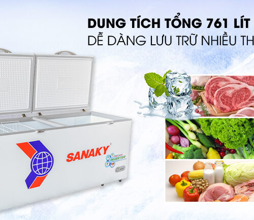 Tủ đông Sanaky Inverter 761 Lít VH-8699HY3 có kích thước lớn đi kèm dung tích 761 lít sẽ là lựa chọn phù hợp cho kinh doanh tạp hóa lớn, nhà hàng, cơ sở buôn bán hải sản hoặc thực phẩm tươi sống.
