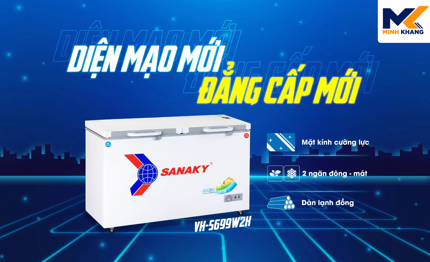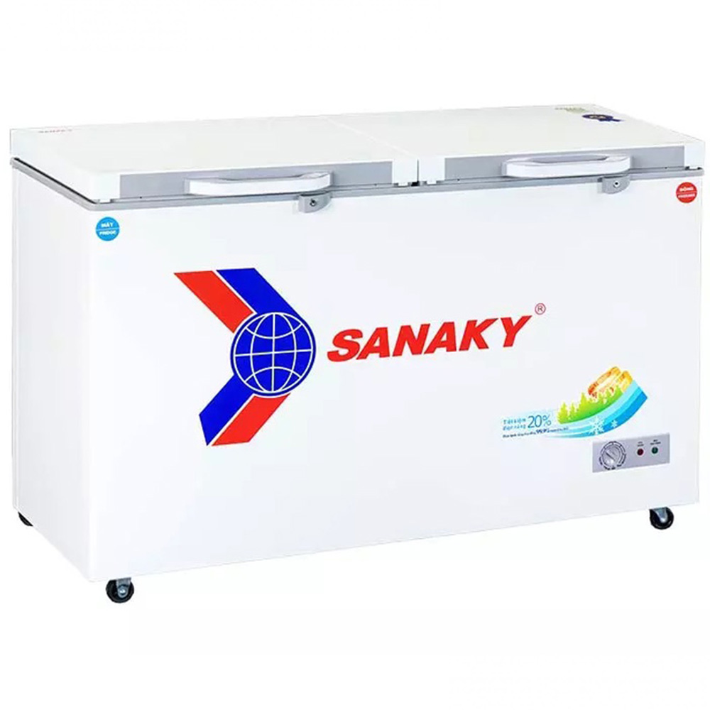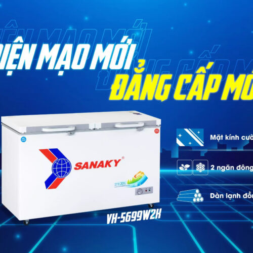 Tủ đông Sanaky VH-5699W2K 2 Ngăn 560 Lít thuộc dòng tủ 1 ngăn đông và 1 ngăn mát với 2 nắp dỡ riêng biệt đem đến sự tiện lợi trong việc bảo quản và tìm kiếm thực phẩm. Sản phẩm mang màu sắc trung tính, phù hợp với mọi không gian bếp, quán ăn hay nhà hàng. Ngoài ra thiết kế thêm 4 cánh xe chịu lực giúp việc di chuyển trở nên dễ dàng hơn, không tốn nhiều công sức. Cánh tủ làm bằng kính cường lực giúp tô điểm cho không gian bếp, có khả năng chịu lực và nhiệt tốt. Đồng thời kính cường lực có bề mặt nhẵn bóng có thể dễ dàng lau chùi vệ sinh mà không mất nhiều thời gian.