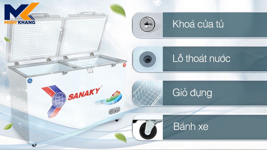 – Lỗ thoát nước giúp cho việc xả nước bên trong tủ đông được dễ dàng hơn, tránh tình trạng bị tắc nghẽn.