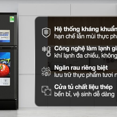 - Kiểu tủ: Ngăn đá trên – 2 cánh
