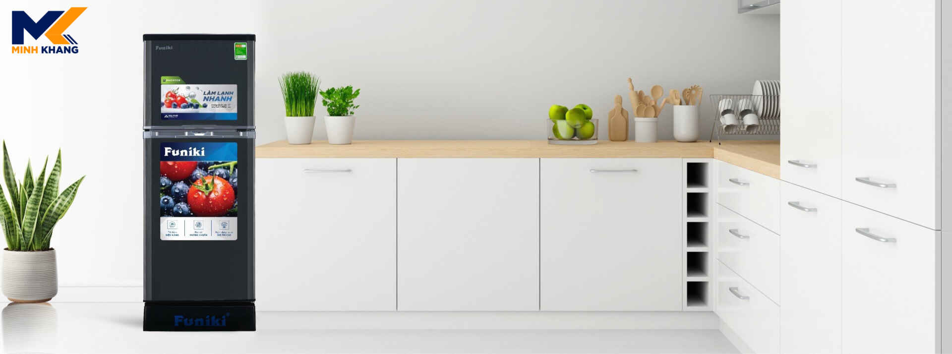 Tủ lạnh Funiki FR-186ISU 2 Cánh 180 Lít sở hữu kiểu dáng nhỏ gọn, thiết kế ngăn đá trên quen thuộc cùng gam màu ghi đen sang trọng dễ dàng hòa hợp với nhiều không gian nội thất trong nhà bếp. Chất liệu cửa tủ làm bằng thép chắn chắn, có độ bền cao giúp chịu lực tốt khi đóng mở cửa.