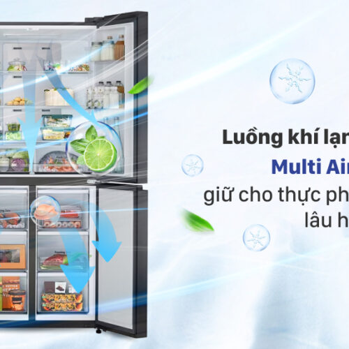 Tủ lạnh sử dụng hệ thống làm lạnh đa chiều Multi Air Flow, luồng khí lạnh sẽ được thổi ra từ nhiều cửa thoát hơi lạnh hơn, giúp cho khí lạnh phân bổ, lan tỏa đều ở tất cả các ngăn bên trong tủ giúp thực phẩm giữ được sự tươi ngon.