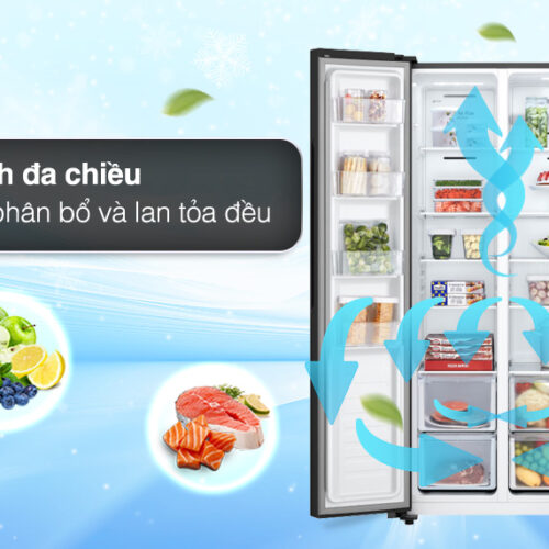 – Làm lạnh đa chiều: luồng hơi lạnh được thổi ra từ cửa thoát khí giúp cho hơi lạnh lan tỏa, phân bổ đồng đều ở mọi ngăn cho thực phẩm giữ tươi lâu hơn.