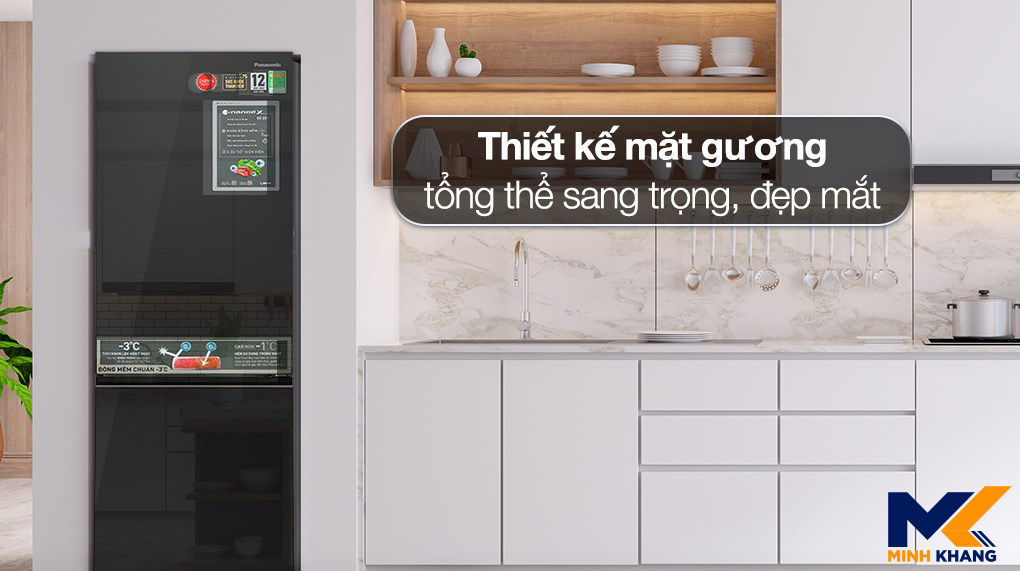 Tủ Lạnh Panasonic NR-BC361VGMV Inverter 2 Cánh 325 Lít thuộc dòng tủ ngăn đá dưới có thiết kế phẳng tràn viền kèm với chất liệu mặt cửa tủ được làm bằng kính đen sang trọng, tạo nên sự tinh tế cho sản phẩm và phù hợp với không gian hiện đại. Dung tích tủ lạnh đạt 325 lít, phù hợp cho các gia đình từ 3-4 người sử dụng.