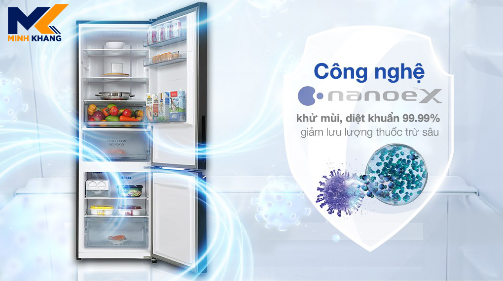 Công nghệ nanoe-X có khả năng tạo ra các ion kích thước nano di chuyển đều khắp mọi ngóc ngách bên trong tủ lạnh, để ức chế sự hoạt động của vi khuẩn đến 99.99%, đồng thời còn làm yếu các liên kết trong các phân tử thuốc trừ sâu còn sót lại trên thực phẩm, từ đó giảm đến 2.8 lần dư lượng thuốc trừ sâu có trên thực phẩm sau khi rửa.