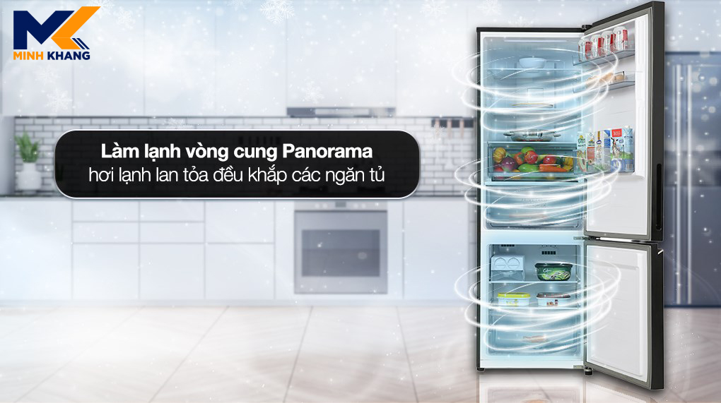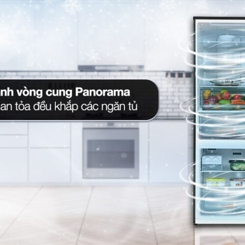 – Làm lạnh vòng cung Panorama giúp hơi lạnh được lan tỏa theo hình vòng cung, bao lấy toàn bộ thực phẩm để duy trì được độ tươi ngon và kéo dài thời gian bảo quản thực phẩm lâu hơn.