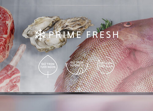 Công nghệ Prime Fresh giúp giữ nguyên dưỡng chất và hương vị thịt cá, mang đến hương vị tuyệt vời, trọn vẹn dinh dưỡng trong từng món ăn. Công nghệ cấp đông mềm giúp cấp đông mềm thịt, cá hoàn hảo chuẩn -3oC, giữ trọn chất dinh dưỡng.