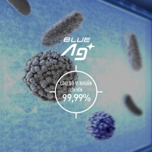 Công nghệ Blue Ag+ sử dụng ánh sáng xanh kích hoạt tinh thể bạc Ag+ giúp diệt tới 99.99% vi khuẩn trên toàn bộ ngăn mát tủ lạnh, giúp thực phẩm luôn tươi ngon và giữ trọn vẹn dinh dưỡng.