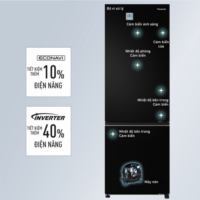 Tủ lạnh Panasonic được trang bị tính năng cảm biến cửa có khả năng nhận biết được tần suất đóng/mở cửa theo thói quen của người sau và ghi nhớ. Sau đó tự động điều chỉnh nhiệt độ làm mát phù hợp, giúp nhiệt độ bên trong đạt chuẩn nhưng vẫn tiết kiệm điện. Kết hợp với đó là công nghệ biến tần Inverter giúp tủ vận hành êm ái, ổn định và cho hiệu quả tiết kiệm điện vượt trội.