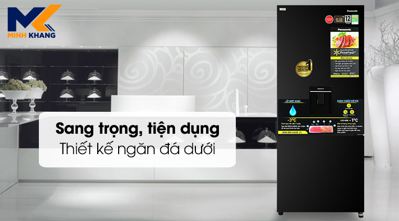 Tủ lạnh Panasonic NR-BX421GPKV Inverter 377 Lít 2 Cánh thuộc dòng tủ ngăn đá dưới có thiết kế phẳng cùng ngăn lấy nước bên ngoài mang tới đường nét gọn gàng và tinh tế, giúp làm sáng bừng không gian của gia chủ, đồng thời tránh thất thoát hơi lạnh.