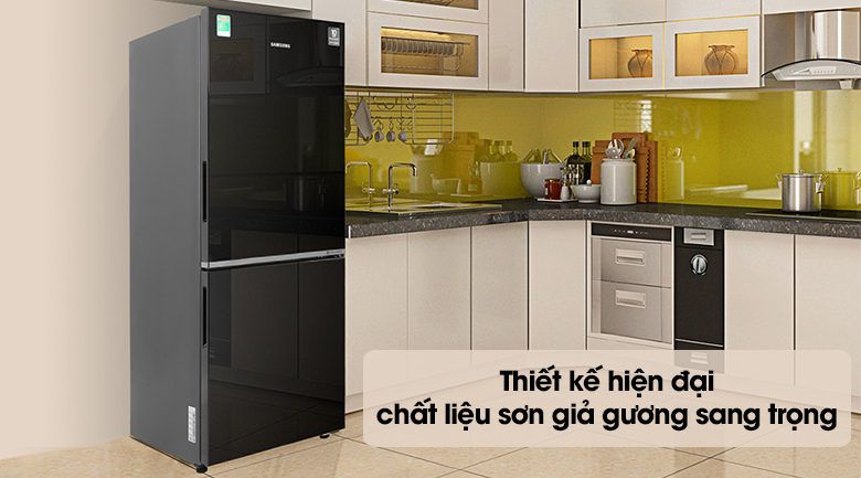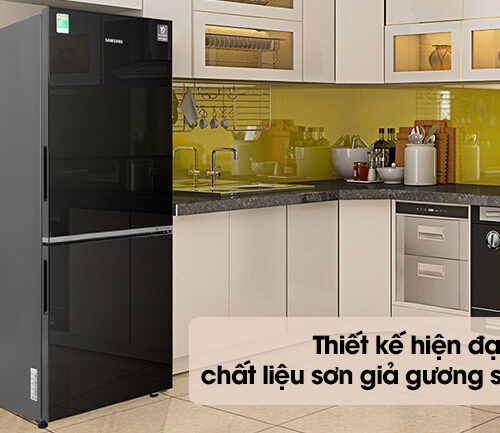 - Chất liệu cửa tủ lạnh: Kim loại phủ sơn bóng giả gương