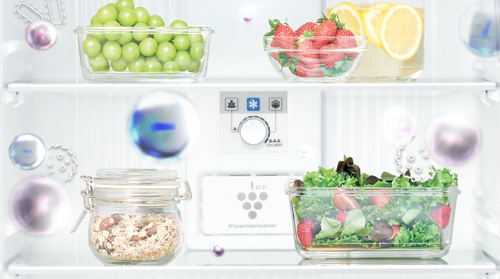 Công nghệ Plasmacluster Ion tạo ra các ion dương và âm lan tỏa khắp các ngăn tủ và khi gặp vi khuẩn, virus, nấm mốc sẽ tạo thành các gốc OH- để phá hủy các cấu trúc Protein của vi khuẩn và hút Hidro. Qua đó tạo phân tử nước và giải phóng vào không gian tủ mang đến một không gian trong lành, sạch khuẩn.