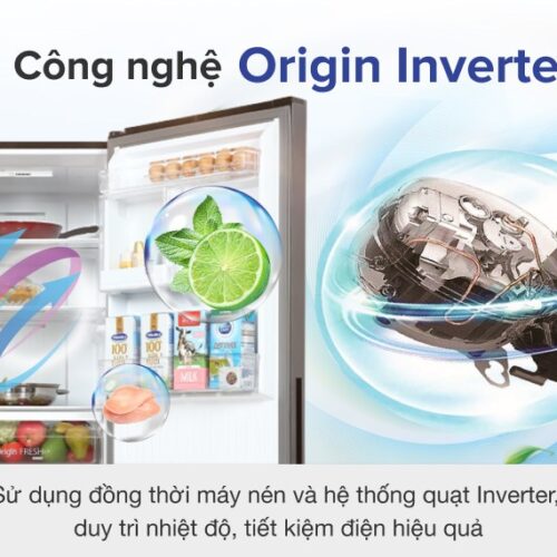 Công nghệ Origin Inverter sử dụng máy nén và quạt Inverter có khả năng duy trì nhiệt độ làm lạnh ổn định bên trong mà vẫn đảm bảo tủ lạnh tiêu thụ điện năng thấp nhất, đồng thời còn làm giảm thiểu tiếng ồn phát ra trong suốt quá trình hoạt động.