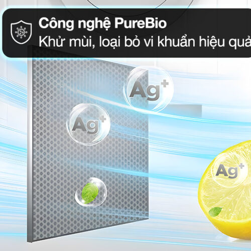 Công nghệ PureBio được cấu tạo từ chất liệu Ceramic và bao phủ bởi tinh thể bạc Ag+ có khả năng ức chế vi khuẩn và khử mùi hôi hiệu quả từ thực phẩm. Ngoài ra còn giúp cho không gian trong tủ được thông thoáng và an toàn cho sức khỏe người dùng.