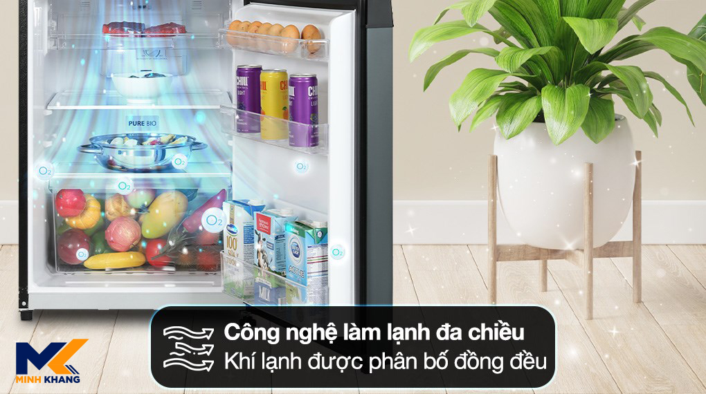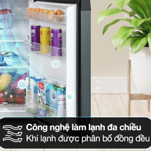 – Công nghệ làm lạnh đa chiều: khí lạnh sẽ được thổi ra từ nhiều cửa thoát hơi lạnh, đồng thời lan tỏa và phân bổ khí lạnh đều ở khắp tủ, nhờ đó thực phẩm sẽ được làm lạnh toàn diện, duy trì độ tươi ngon cũng như tránh được tình trạng hơi lạnh tỏa ra không đồng đều giữa các ngăn.