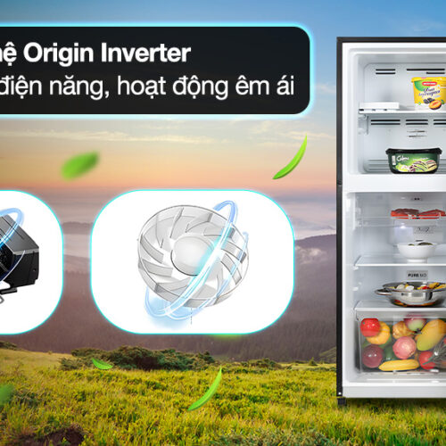 Công nghệ Origin Inverter sử dụng máy nén và quạt Inverter có khả năng duy trì nhiệt độ làm lạnh ổn định bên trong mà vẫn đảm bảo tủ lạnh tiêu thụ điện năng thấp nhất, đồng thời còn làm giảm thiểu tiếng ồn phát ra trong suốt quá trình hoạt động.