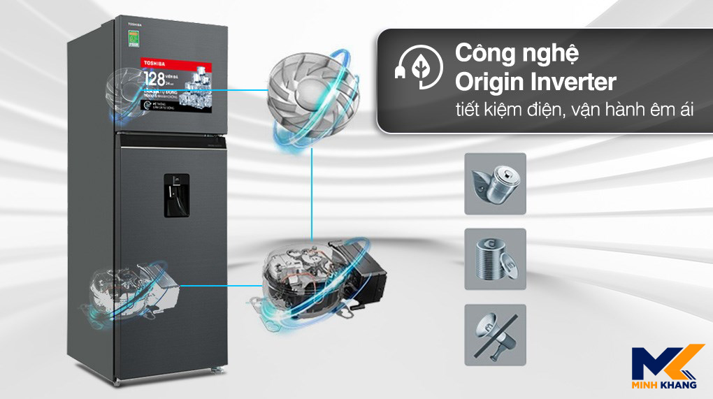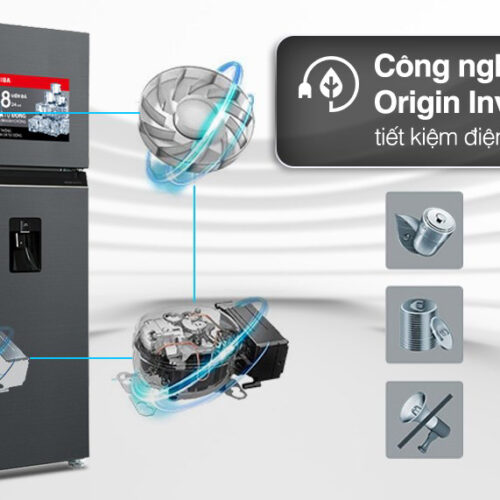 Công nghệ Origin Inverter sử dụng máy nén và quạt Inverter có khả năng duy trì nhiệt độ làm lạnh ổn định bên trong mà vẫn đảm bảo tủ lạnh tiêu thụ điện năng thấp nhất, đồng thời còn làm giảm thiểu tiếng ồn phát ra trong suốt quá trình hoạt động.