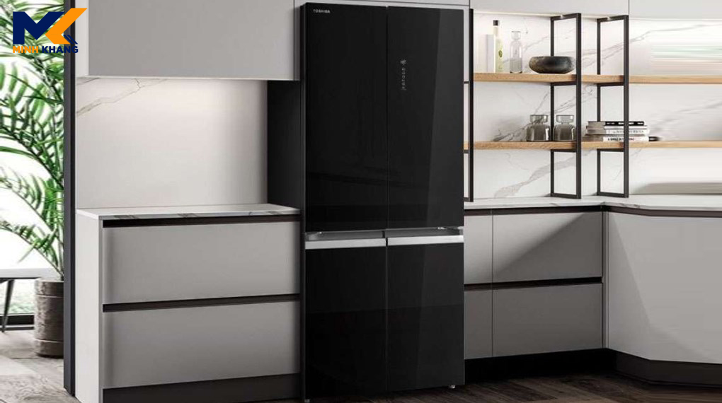 - Chất liệu cửa tủ lạnh: Kính đen cường lực