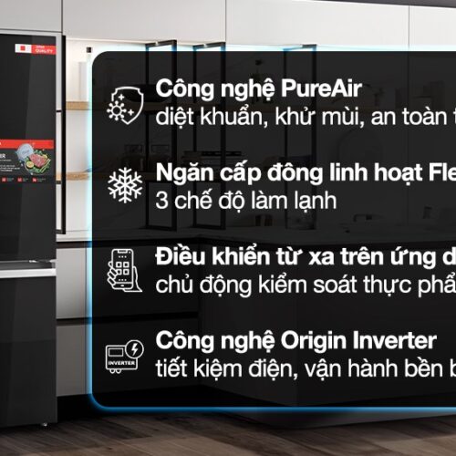 – Công nghệ Multi Air Flow tỏa khí lạnh vừa đủ đến mọi ngóc ngách bên trong tủ, góp phần duy trì độ tươi ngon của thực phẩm đáng kể.
