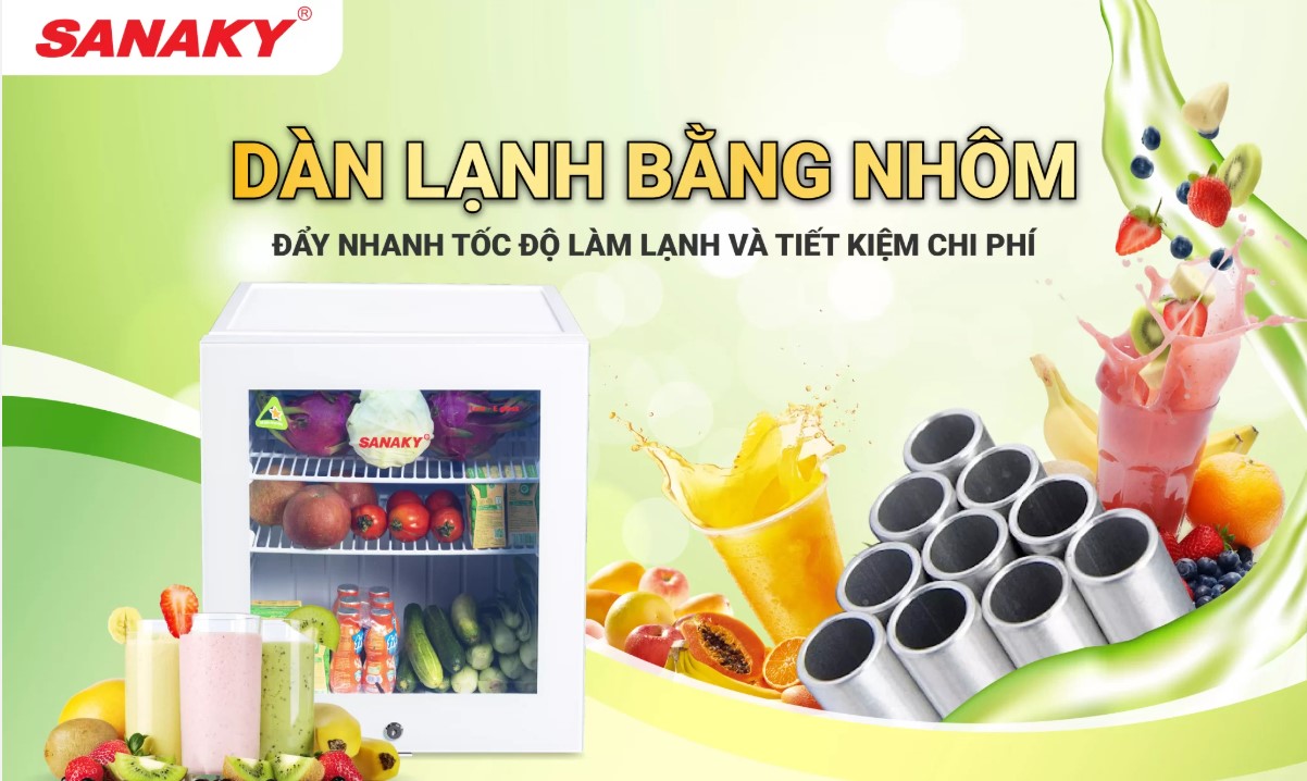 - Dàn lạnh nhôm giúp tủ có thể hoạt động với công suất tối đa và làm lạnh sâu, chất liệu nhôm khiến trọng lượng tủ nhẹ hơn và có thể vận chuyển dễ dàng