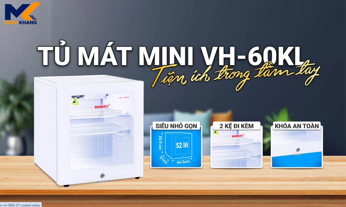 Tủ Mát mini Sanaky 52 Lít VH-60KL sở hữu kích thước hộp đặc trưng nhỏ gọn với dung tích 52l đáp ứng nhu cầu sử dụng cho 1-2 người. Với chiều cao 50,9cm và chiều rộng 44,5cm bạn có thể thuận tiện di chuyển tủ và không chiếm nhiều diện tích phòng. Thân tủ mát mini Sanaky được làm bằng chất liệu thép không gỉ bền chắc và sơn màu trắng nổi bật, sạch sẽ.