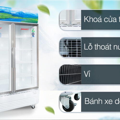 Tủ mát Sanaky 500 Lít VH-6009HP được thiết kế dạng đứng với thân tủ được làm bằng thép không gỉ có độ bền cao, phủ lớp sơn tĩnh điện sáng bóng làm tăng tính thẩm mỹ cho sản phẩm. Tủ 2 cánh và 1 ngăn mát với phần cánh tủ bằng nhựa bọc nhôm có độ bền cao và có thể dễ dàng nhìn thấy thực phẩm bên trong, tiện cho việc bán hàng. Lòng tủ bằng hợp kim nhôm sơn tĩnh điện có khả năng giữ lạnh tốt trong khoảng thời gian dài một cách nhanh chóng.