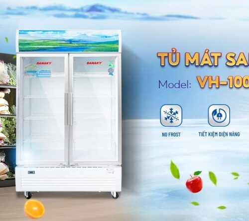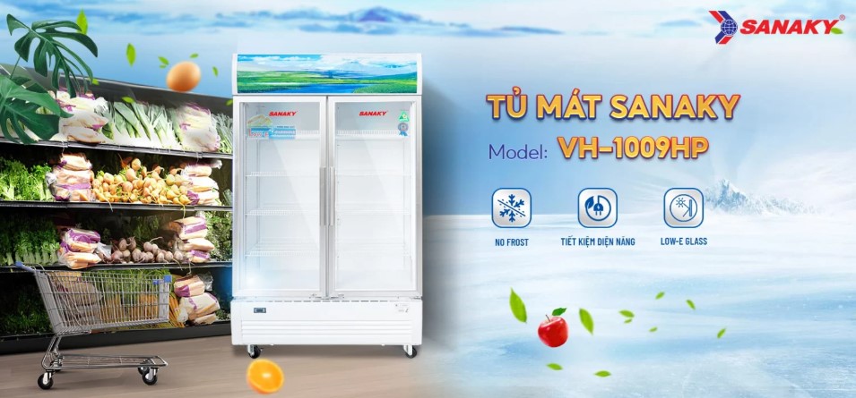 Tủ mát Sanaky 900 Lít VH-1009HP được thiết kế dạng đứng với thân tủ được làm bằng thép không gỉ có độ bền cao, phủ lớp sơn tĩnh điện sáng bóng làm tăng tính thẩm mỹ cho sản phẩm. Tủ 2 cánh và 1 ngăn mát với phần cánh tủ bằng nhựa bọc nhôm có độ bền cao và có thể dễ dàng nhìn thấy thực phẩm bên trong, tiện cho việc bán hàng. Lòng tủ bằng hợp kim nhôm sơn tĩnh điện có khả năng giữ lạnh tốt trong khoảng thời gian dài một cách nhanh chóng.