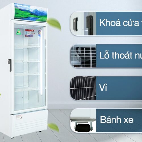 - Đèn LED: Tủ mát Sanaky được thiết kế với hệ thống đèn LED dọc theo hông và nóc tủ, chiếu sáng toàn bộ các góc khuất giúp trưng bày các sản phẩm bắt mắt và thu hút. Hơn nữa, hệ thống đèn LED còn tiết kiệm điện năng và có tuổi thọ bền bỉ hơn nhiều lần so với các loại đèn huỳnh quang, đèn sợi đốt,… mang lại giá trị sử dụng lâu dài cho người sử dụng.