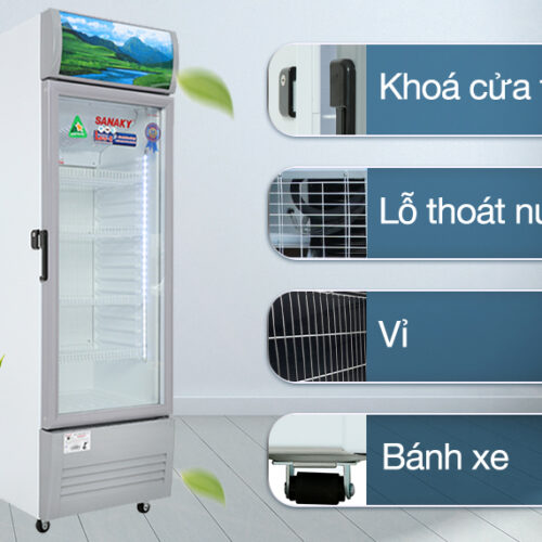 Tủ Mát Sanaky VH408KL 340 Lít sở hữu kiểu dáng đứng với kích thước nhỏ gọn phù hợp với nhu cầu bảo quản thực phẩm, đồ uống, trưng bày sản phẩm ở các cửa hàng tạp hóa, cửa hàng tiện lợi. Tủ với chất liệu thép sơn tĩnh điện, hạn chế ăn mòn, bền bỉ theo thời gian. Chất liệu lòng tủ bằng nhựa ABS an toàn, không gây mùi nhựa khó chịu, có độ bền cao, dễ dàng lau chùi và vệ sinh.