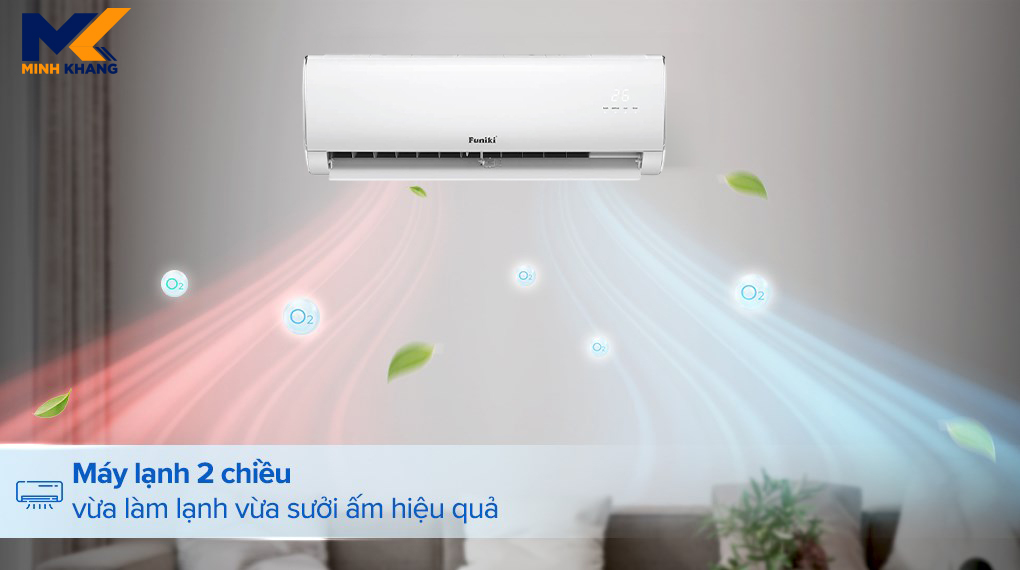 Cuối cùng là mẫu điều hòa Funiki 2 chiều HSH12TMU không chỉ có khả năng làm lạnh mà còn có thể sưởi ấm nhờ tích hợp van đảo chiều, giúp đem đến cho người dùng không gian mát lạnh sảng khoái vào mùa hè nắng nóng và ấm áp vào mùa đông lạnh giá.