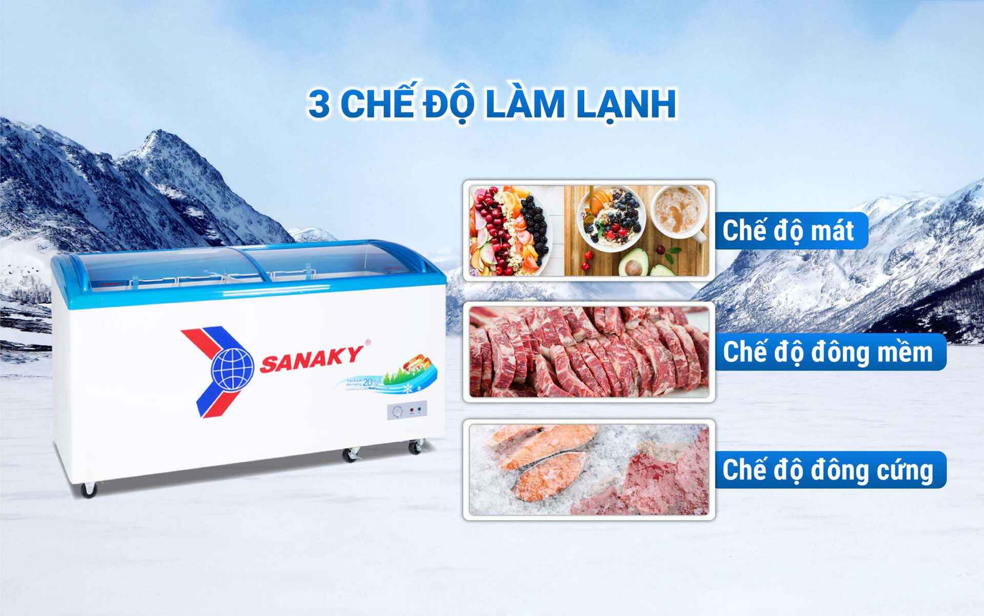 Bên cạnh thiết kế đẹp mắt, tủ đông Sanaky VH-3699W2KD còn được trang bị công nghệ làm lạnh 360 độ kết hợp dàn lạnh đồng giúp hơi lạnh sẽ được tỏa đều bên trong tủ, tác động toàn diện lên bề mặt thực phẩm, đem đến hiệu quả làm lạnh sâu, đóng đông triệt để.